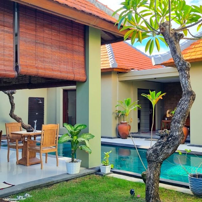 This is a spacious and well-equipped villa available for rent located at Jalan Wirasatya in Tukad Balian, Sanur, just a few minutes drive away from Sanur Beach. The villa boasts three bedrooms, all with ensuite bathrooms, two of which are main bedrooms, and an additional bedroom. The property also features a large swimming pool, measuring 2.5m x 8m and 1.60m deep, a laundry room with a washing machine, and regular cleaning services three times per week, which includes changing the linen once a week. Additionally, the villa includes a pool and garden maintenance service twice per week, wifi up to 75 Mbps, electricity of 5500 KW, Banjar, and waste services. There are also two main bedrooms equipped with TVs. Please note that electricity bills are excluded from the rent. The villa can be rented for IDR 374,000,000 per year, IDR 253,000,000 per 6 months, or IDR 37,400,000 per month.